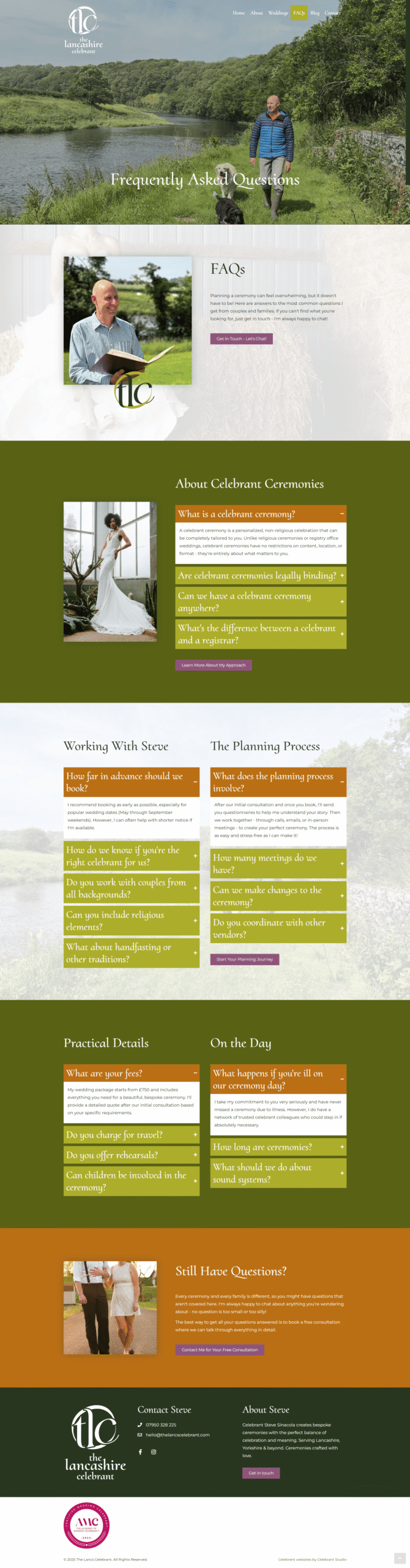 When designing Steve’s website, our goal was to showcase both his professional storytelling expertise and his warm, approachable style. The result is a site that invites couples to imagine their perfect ceremony, while reflecting Steve’s unique blend of creativity, professionalism, and heartfelt connection.