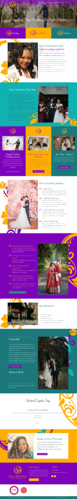 When designing Vanessa’s website, we focused on showcasing her elegant aesthetic and romantic tone, while highlighting the full experience she offers. The result is a polished, aspirational space that reflects her brand and speaks directly to couples looking for both style and substance in their wedding day.